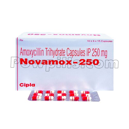 A wide range of bacterial illnesses can be treated with the broad-spectrum antibiotic Novamox 250 mg Capsule. It includes amoxicillin, an antibiotic belonging to the penicillin class, which acts by preventing bacterial development and halting the spread of illnesses.