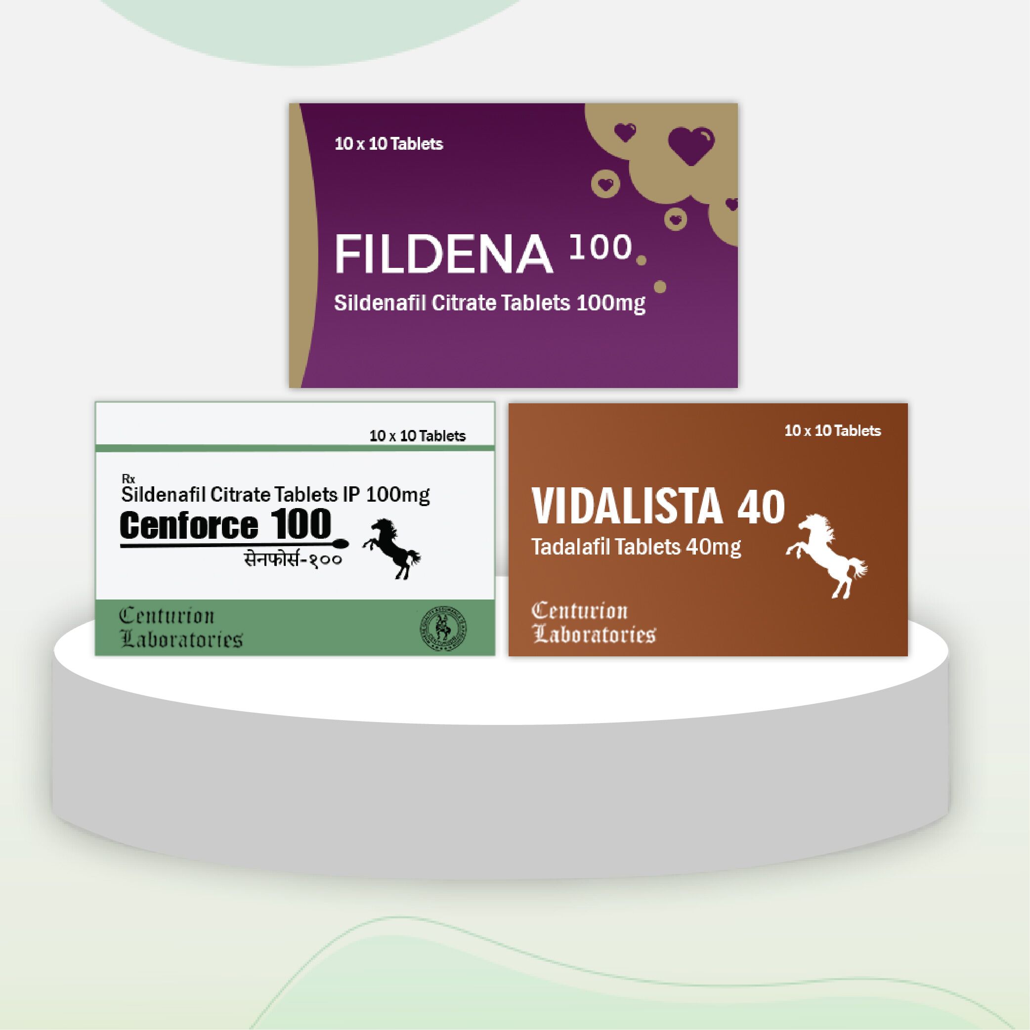 If you notice the composition of each brand in this pack you will find that two of them have the same substance present in it. These are Cenforce and Fildena with the same composition Sildenafil. Vidalista gives erections with a different generic item known as Tadalafil.